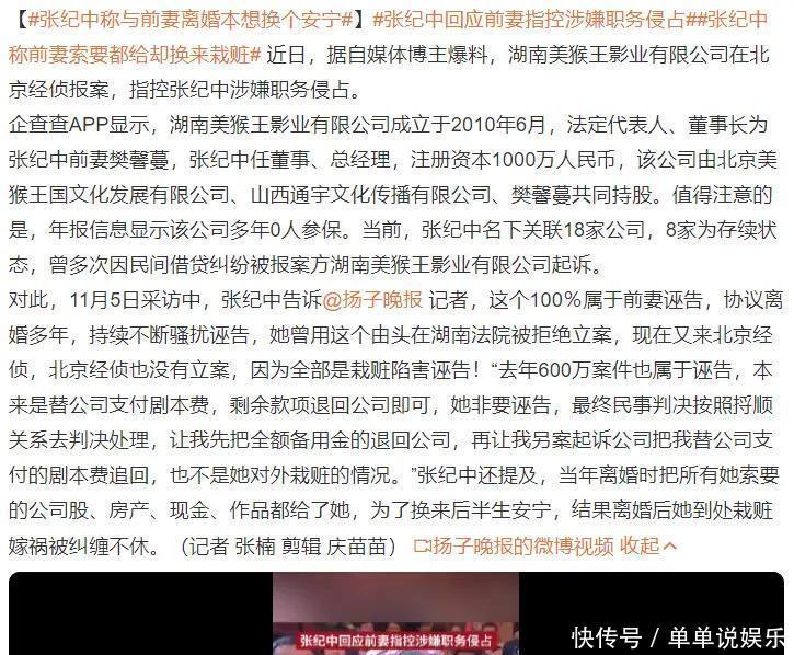 吃瓜第二弹:互撕大战升级,昔日恩爱夫妻彻底翻脸“之前在湖南法院就用同样的理由告过我,法院压根没受理。现在跑到北京经侦,结果也一样,完全是在泼脏水。”张纪中的回应掷地有声,却藏不住脸上的憔悴。